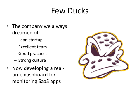 - Ser 10: No aspiramos a ser muchos (de ahí lo de «few»). Supongo que la principal ventaja de ser un equipo pequeño es que es más sencillo mantener una cultura fuerte. Además, siendo pocos, cualquier incorporación probablemente no suponga un rendimiento marginal decreciente. Y tenemos el miedo de que, inevitablemente, cuando creces en plantilla, creces en cargos intermedios que se dedican a controlar información, jugar a bloquear por mantener el poder y politiquear al lado de la cafetera. Así que seremos pocos, o mejor dicho: los justos. No sé si 10 exactamente, pero nos moveremos por esa magnitud.